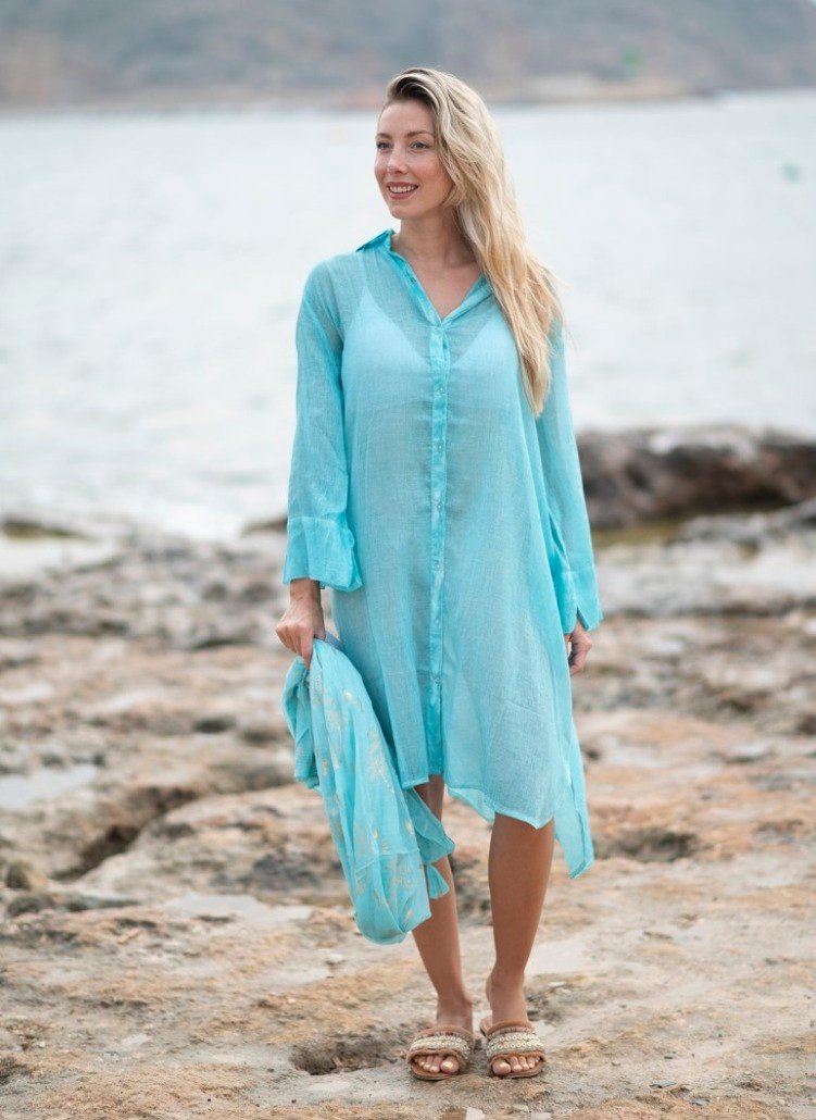 Nouveauté 2026! Cet été La Isla Bonita nous régale avec son motif KARMA déposé sur ses chemises teintées en voile de coton! On craque littéralement pour elle! Une coupe basique mais chic pour aller à la plage! Finition ample et over size, finition arrondi sur le bas. Ouverture petits boutons tout du long pour un chouette décolleté ouvert sur votre maillot de bain. Manches 3/4, ce qui lui donne une allure très plage. Sa coupe loose et légère conviendra parfaitement à toutes les silhouettes! Appréciez sa légèreté et sa transparence sur votre maillot de bain ou votre short en jean!